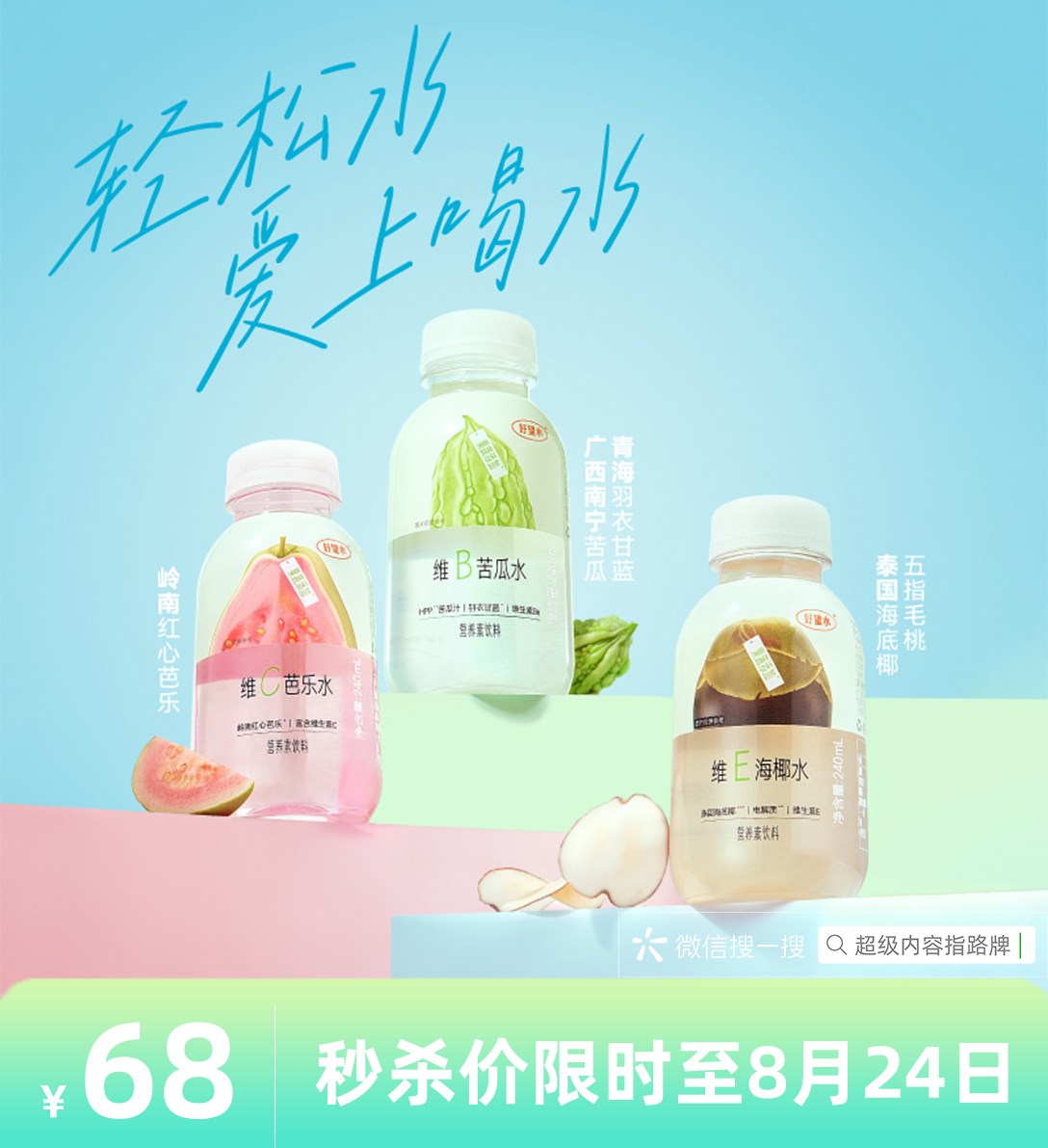 【维B/C/E一站式补充】好望水新品便携芭乐水海椰水苦瓜水维 E 海椰水清甜椰香,维 C 芭乐水酸甜果香,维 B 苦瓜水清冽回甘——一箱三味,清爽解渴无负担。节目听友价 68 元/30 瓶,比百亿补贴还低,常温好带,冰镇更好喝!👉点击下单