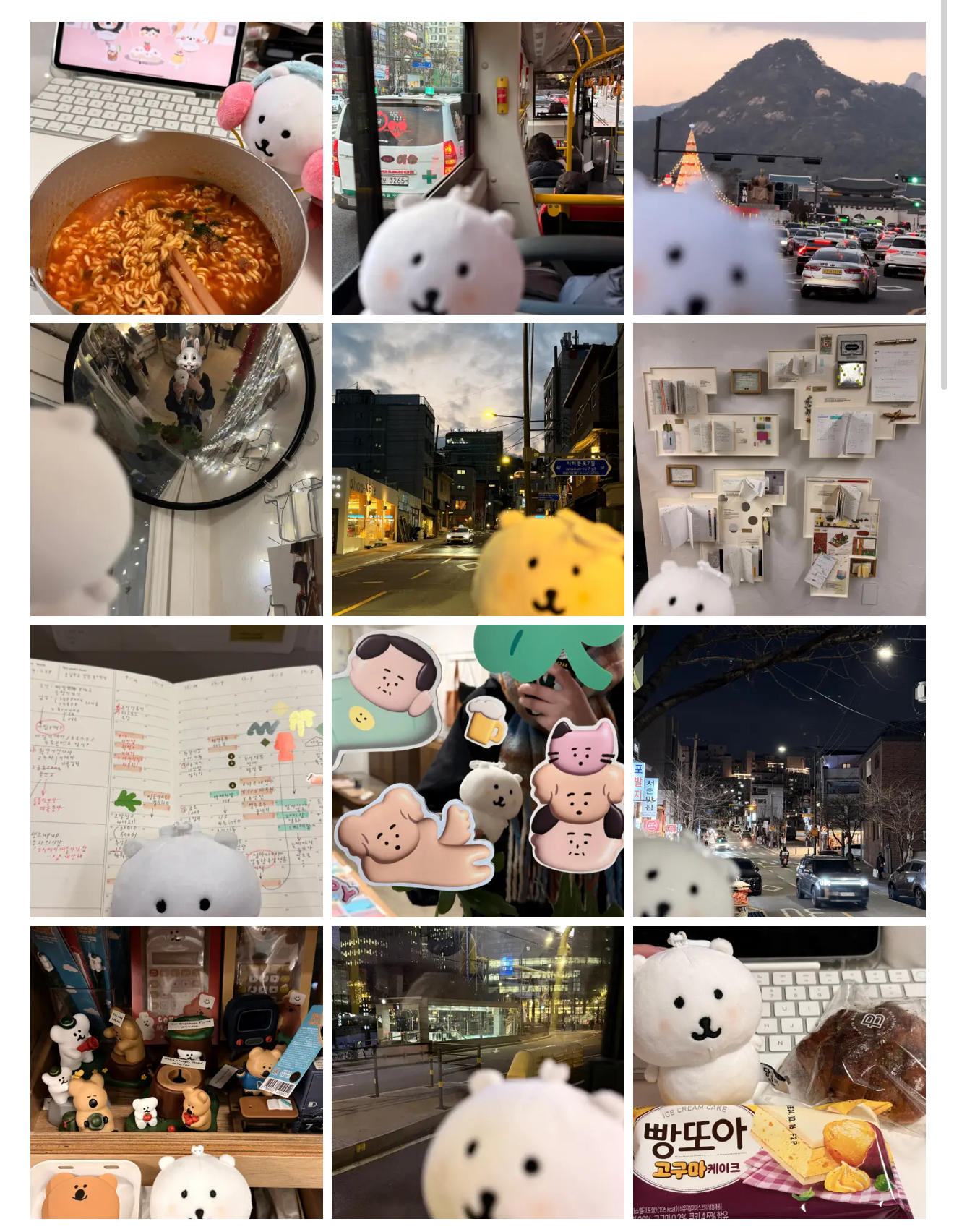 📝:❄️,-7-1度。今日行程:all write - papier prost - little tempo - one more bag - 【公交车】- 教保文库(光华门店)。