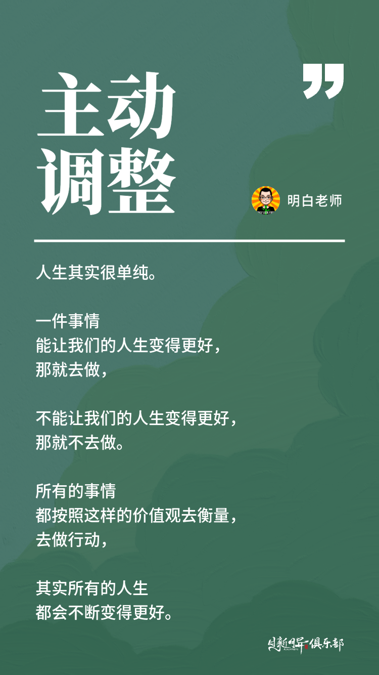 人生其实很单纯,一件事情能让我们的人生变得更好,那就去做,不能让我们的人生变得更好,那就不去做,所有的事情都按照这样一个价值观去衡量,去做行动,其实所有的人生都会不断变得更好。