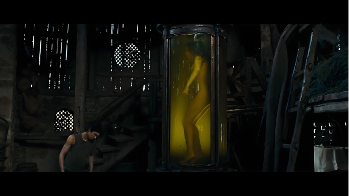 51:00 特别经典的交叉混剪,一边是主教在慷慨激昂的演讲,一边是格雷诺耶在专心致志,小心翼翼的混合精油,制作香水。这种快速剪辑和平行叙事的技巧在同一时间展示截然不同的事件,非常的具有戏剧张力和层次感,这也是导演汤姆·提克威的拍摄特点之一,也能体现出他对电影节奏和叙事的精妙掌控。这种手法并不是提克威独有的,但在他的作品中被运用得十分出色,用以强化对比和突出主题。