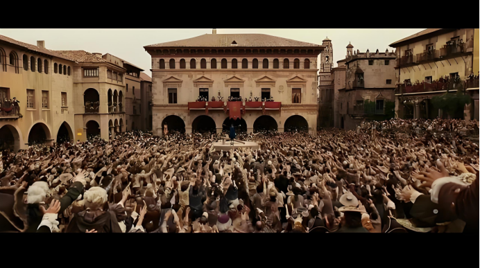 电影中高潮部分,格雷诺耶走上刑场,接受万众之顶礼膜拜: