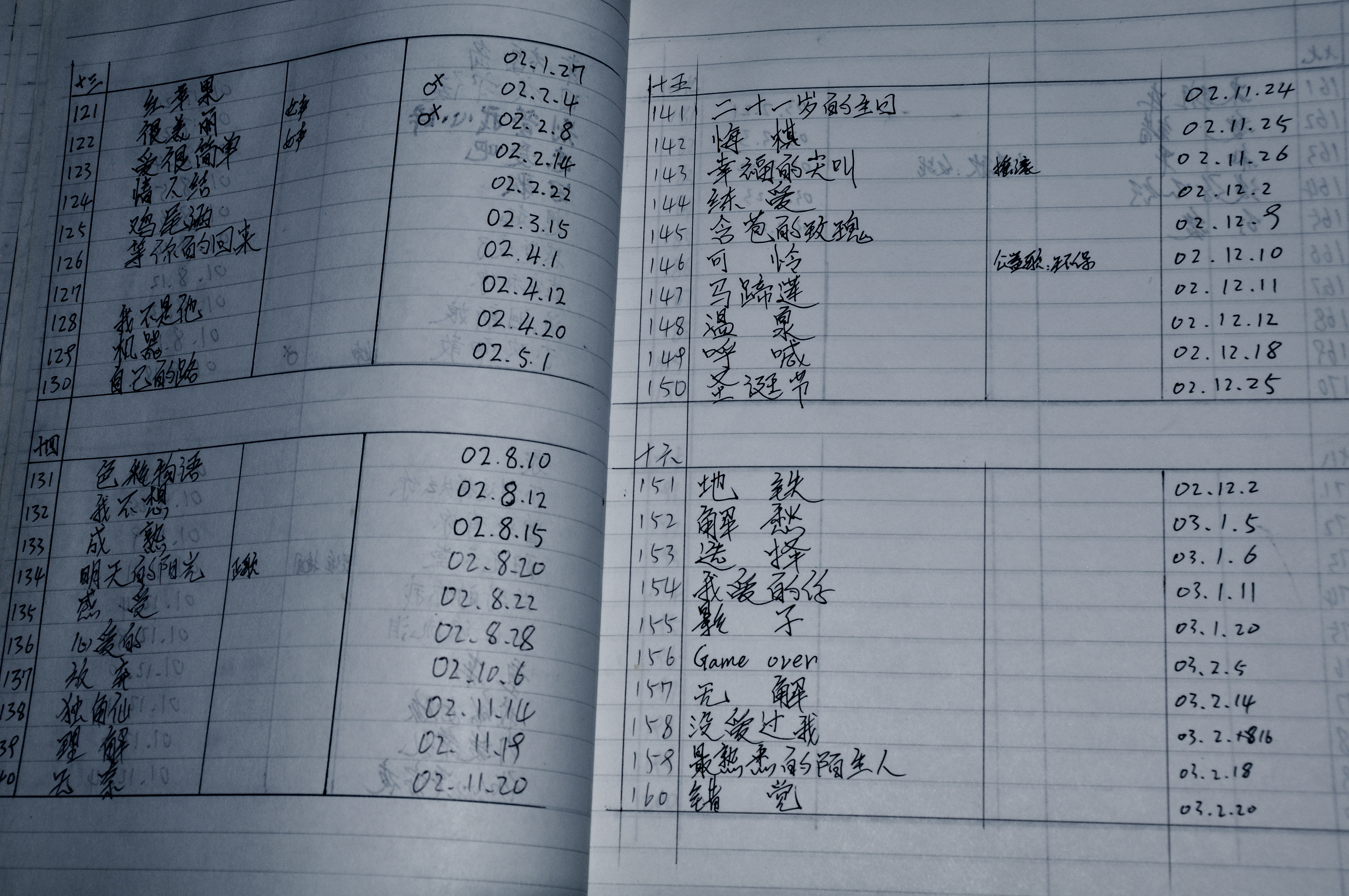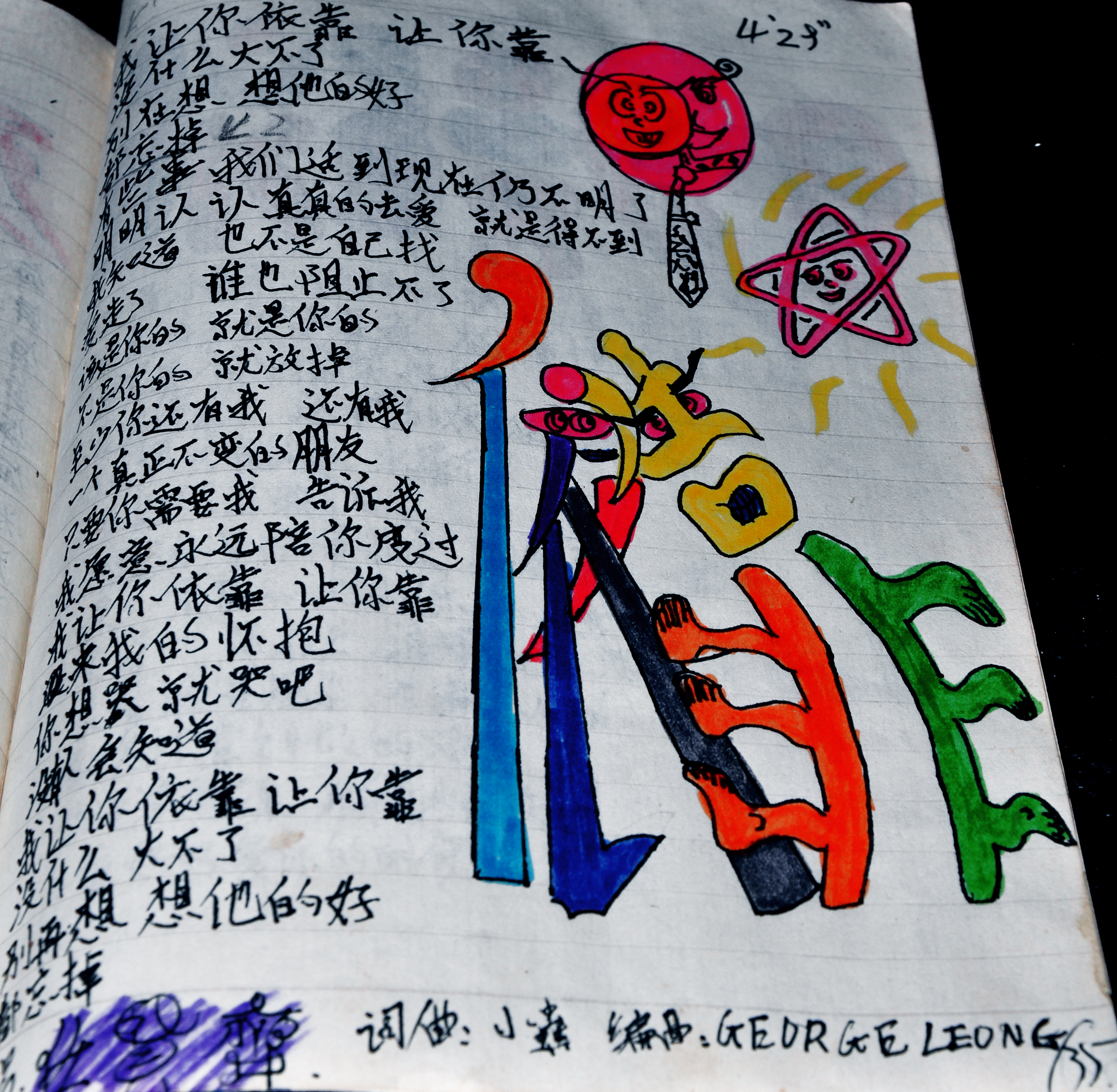 程小挑接触音乐时期的手抄歌词本