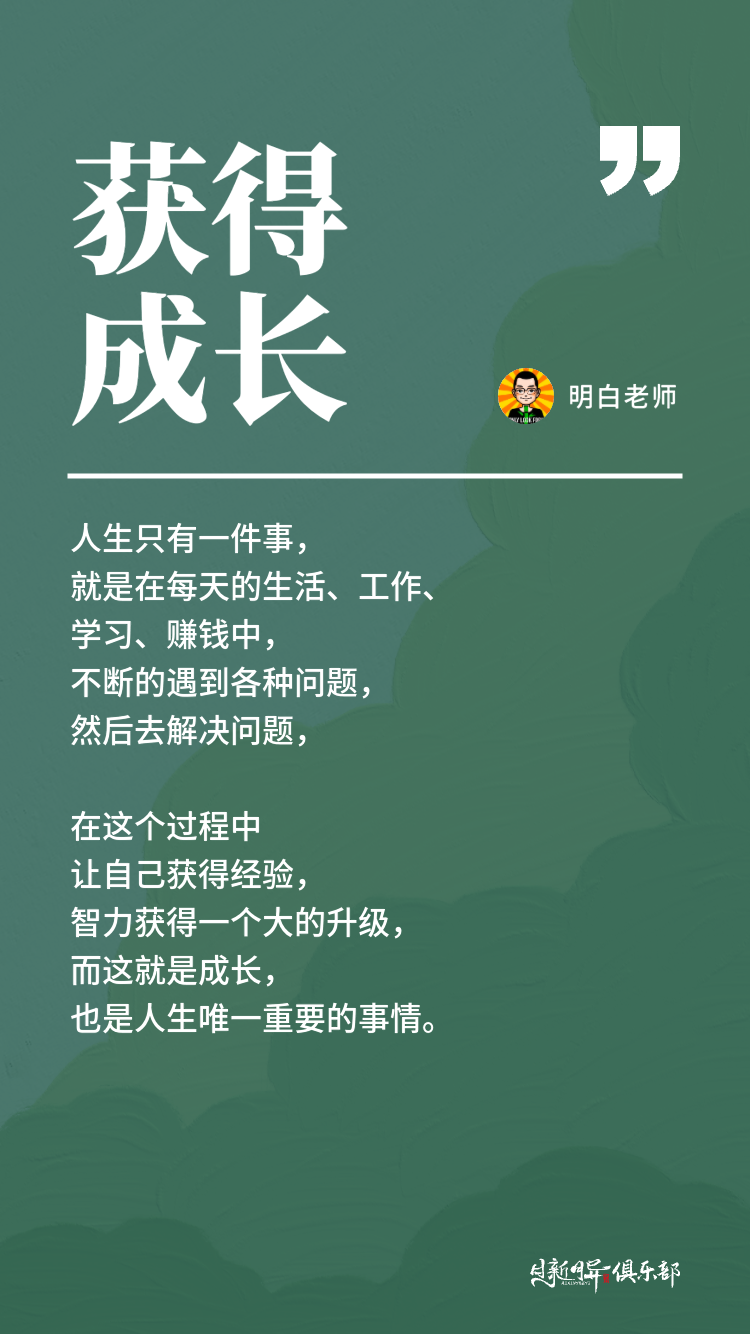 或者说人生只有一件事,就是在每天的生活、工作、学习、赚钱中,不断的遇到各种问题,然后去解决问题,在这个过程中让自己获得经验,获得,智力获得一个大的升级,而这就是成长,也是人生唯一重要的事情。OK谢谢各位。
