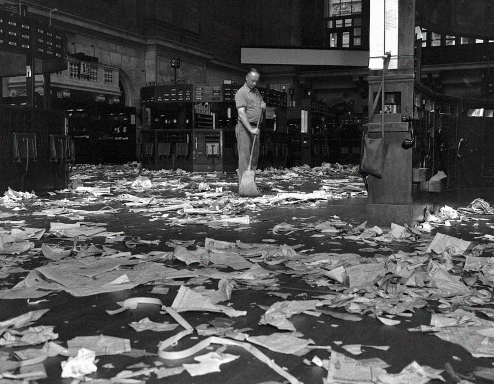 “黑色星期四”只是开始。10月29日,星期二,股市再次暴跌12%,道琼斯指数收于198点。这一天被称为“黑色星期二”。交易大厅的混乱更甚:报价牌的纸带被扯断,经纪人互相推搡,警察不得不进场维持秩序。一位银行家在日记里写道:“我看到一个年轻人跪在地上,手里攥着破产的通知书,哭着喊他母亲的救命钱全没了。”
