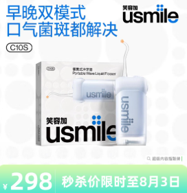 每天餐后洗漱多一步!用行业销冠usmile 的 C10S冲牙器,水流是模拟“海浪式”节奏,清洁力强但不伤牙,官方实测3秒冲净99%牙菌斑。4挡水压轻柔/标准/劲爽/按摩可调,敏感牙也能用,还有95天超长续航,懒人党福音~