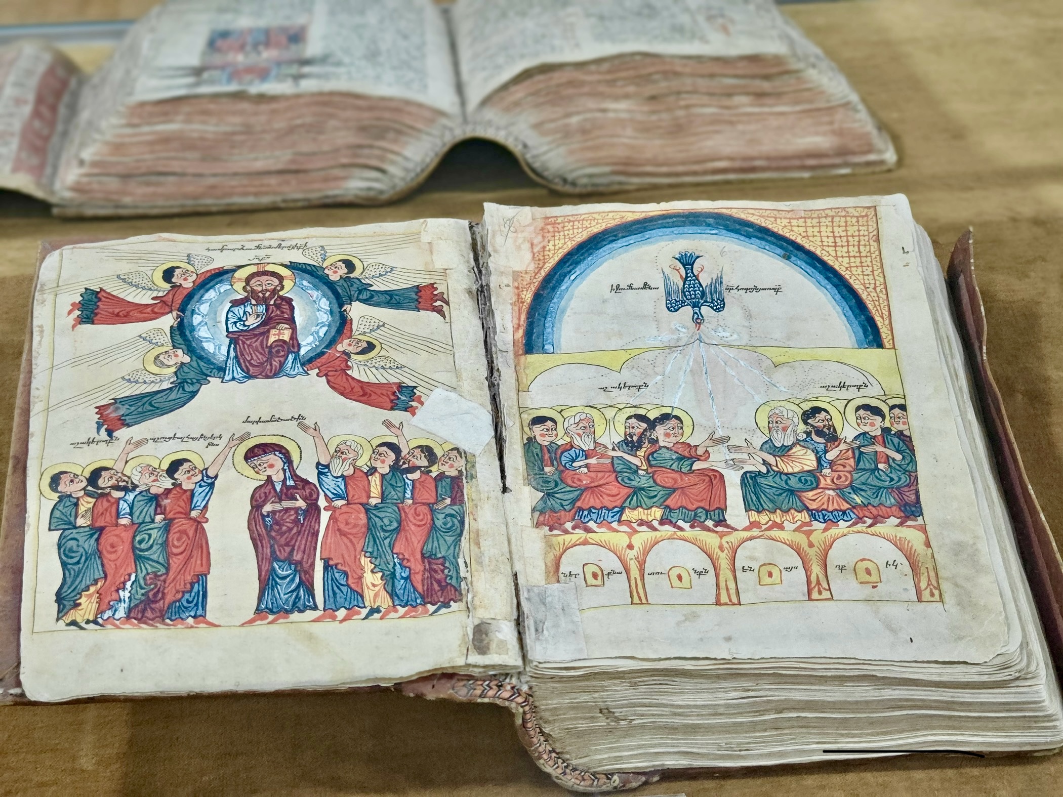 19:30 亚美尼亚画家笔下的圣经故事和耶稣有着独特的形象和色彩,比主堂的巨幅湿壁画更让我觉得亲切可爱。