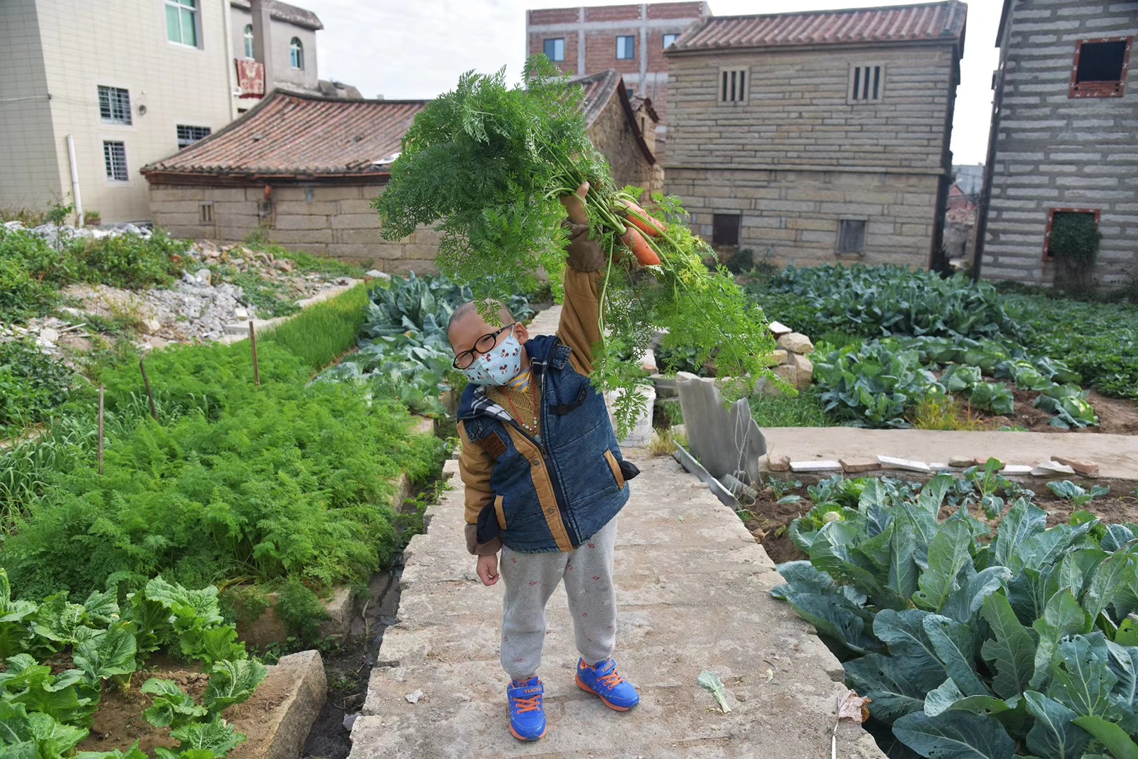 叶鑫鹏和陈丽永在蔬菜地的照片