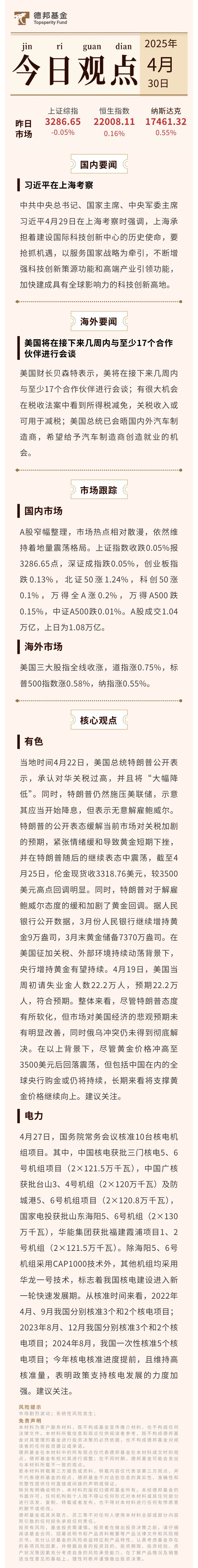 4月30日财经速递,带您最快跟踪板块表现和市场资讯!