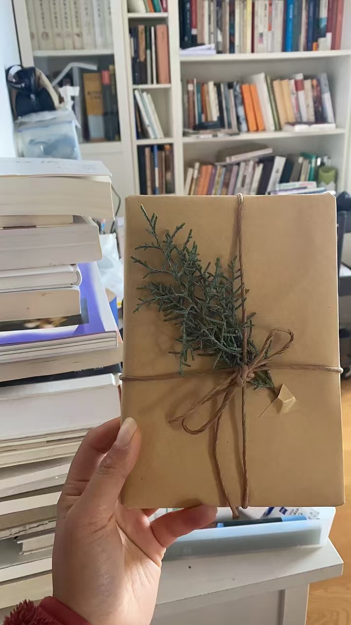 在又合买书,真的像是买到礼物,肖南会用牛皮纸将书整齐地包装好,系上蝴蝶结,插上手头上有的鲜花或者松柏。拿到这样被人珍之重之的包裹,怎么能不令人觉得心情愉悦呢?