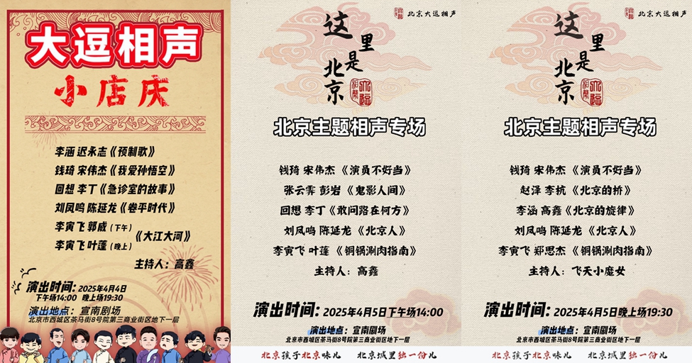 4月4日、5日下午、晚上在宣南剧场举办“大逗相声小店庆”、“这里是北京”专场!