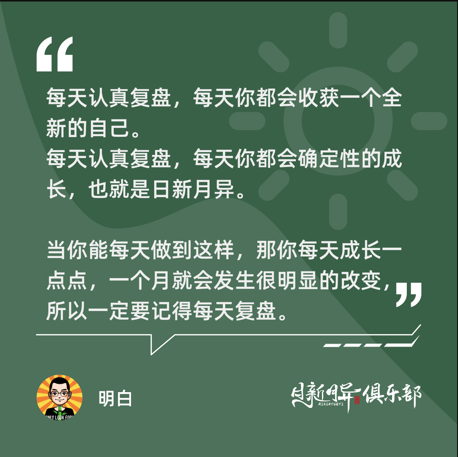 每天认真复盘,每天你都会收获一个全新的自己,每天认真复盘,每天你都会确定性的成长,也就是日新月异。