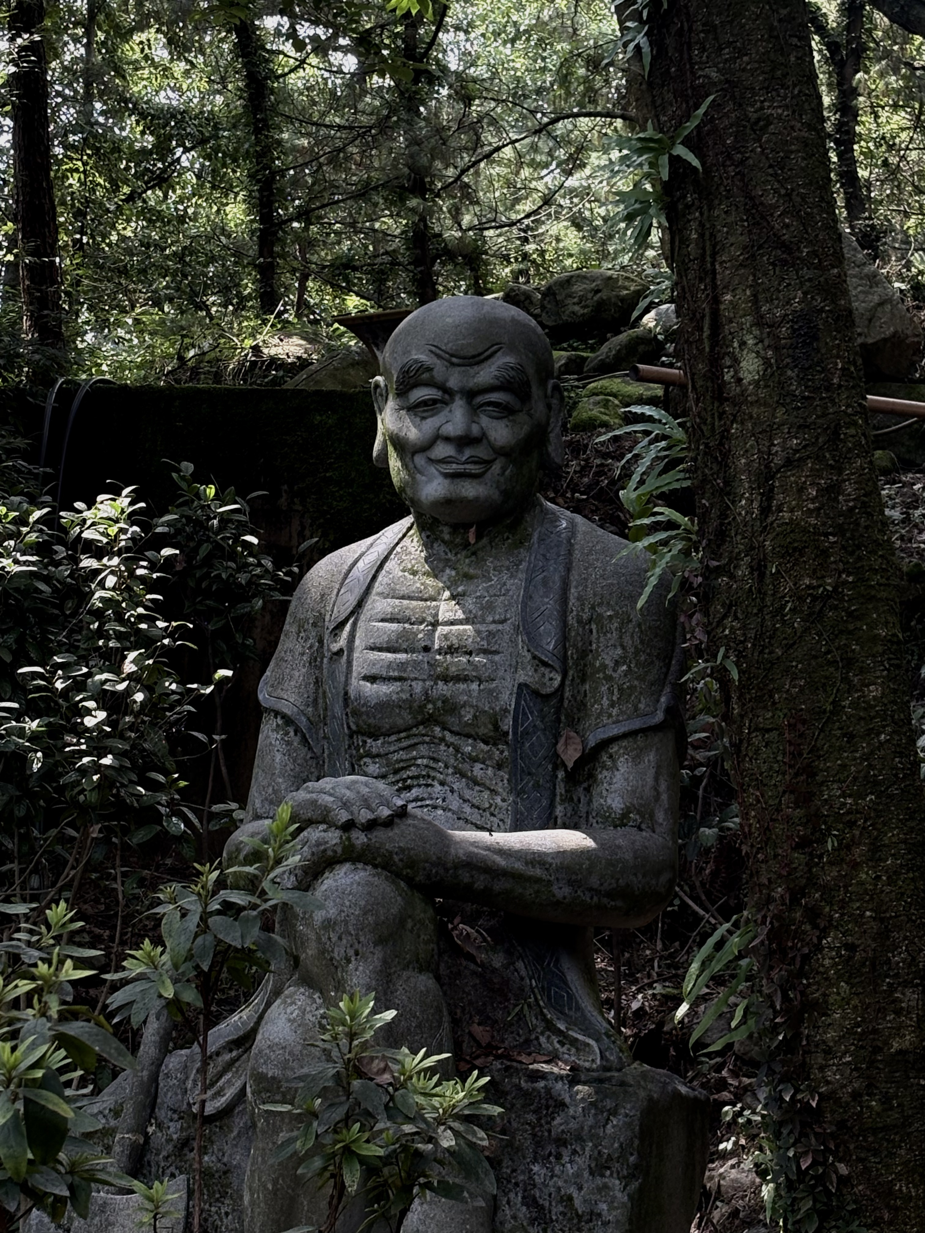 在寺里待了一上午,跟着感受在不同的角落做了三次冥想,在无为圣境里不经意回头,看见一尊佛像,就那么慈悲地、温柔地对着我笑,而他的模样也像极了我去世的外公。