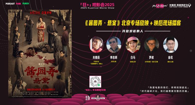 本期「关雅荻·吾爱西尼马」北京场,关雅荻邀请了《仙境之桥》白马、《日谈公园》李叔、《黑水公园》金花与《歪打正着》《头号玩家》罗叔,在集体观影《酱园弄·悬案》后,与现场观众展开长达一个多小时的开放式讨论,并以现场“打分环节”收束。讨论核心围绕影片的叙事结构、人物塑造、类型定位、性别表达与市场策略五个层面展开,既有犀利批评,也有技术与产业视角的宽容与辩护。