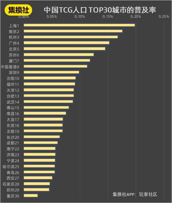 中国 TCG 人口 Top30 城市普及率排行