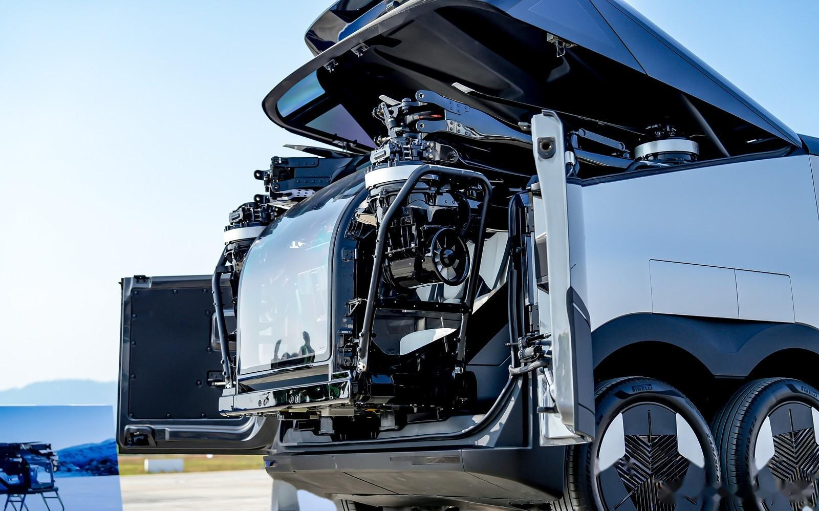 在航展上,小鹏汇天的“陆地航母”无疑是最吸引眼球的明星产品。这款飞行汽车不仅外观酷炫,更在技术上实现了诸多突破。它的飞行体采用电动六轴六桨构型,选用碳纤维材料制作,既保证了强度又实现了轻量化。同时,270°全景座舱为用户提供了开阔的飞行视野,让飞行体验更加舒适和震撼。在自动驾驶技术的加持下,“陆地航母”能够实现一键起飞、降落、自动航线规划、自动巡航飞行和智能一键返航等功能,大大降低了操作难度,使得即使是普通市民也能轻松上手。