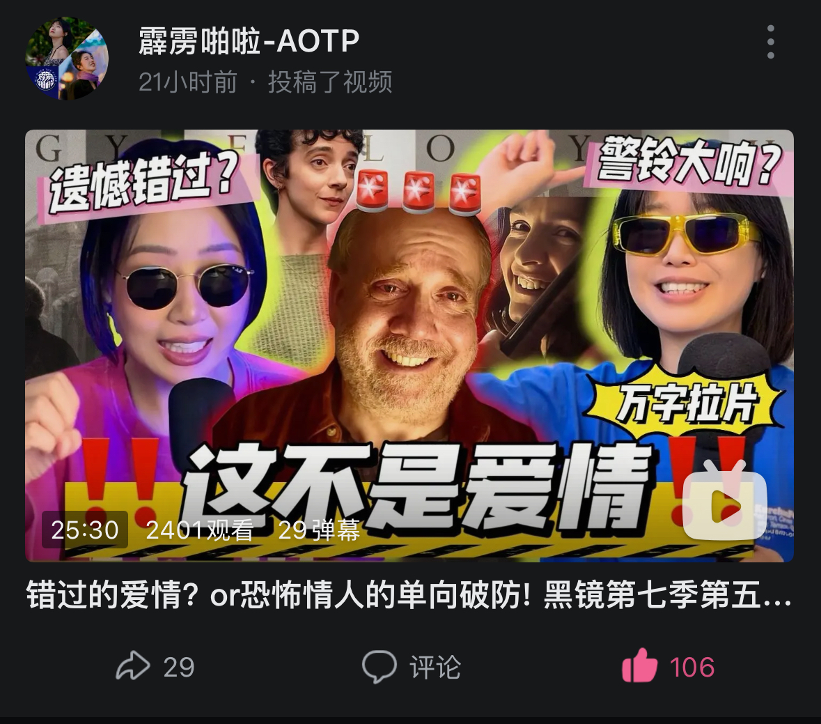 【Ep.46】“亲爱的,那不是爱情”《黑镜》第七季第5集,一部让人“又想骂又想分析”的分歧之作。是深情,还是怨气?是怀旧,还是自恋?他错过了她,还是他从没有真正“看见”她是谁?