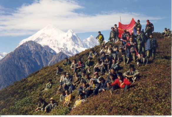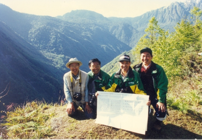1998年4月19日我们如期在雅鲁藏布大峡谷标志点——扎曲,举行发现世界峡谷之最四周年纪念仪式。合影时人人笑逐颜开。右起高登义、张继民、杨逸畴、李渤生。(嘉宾提供)