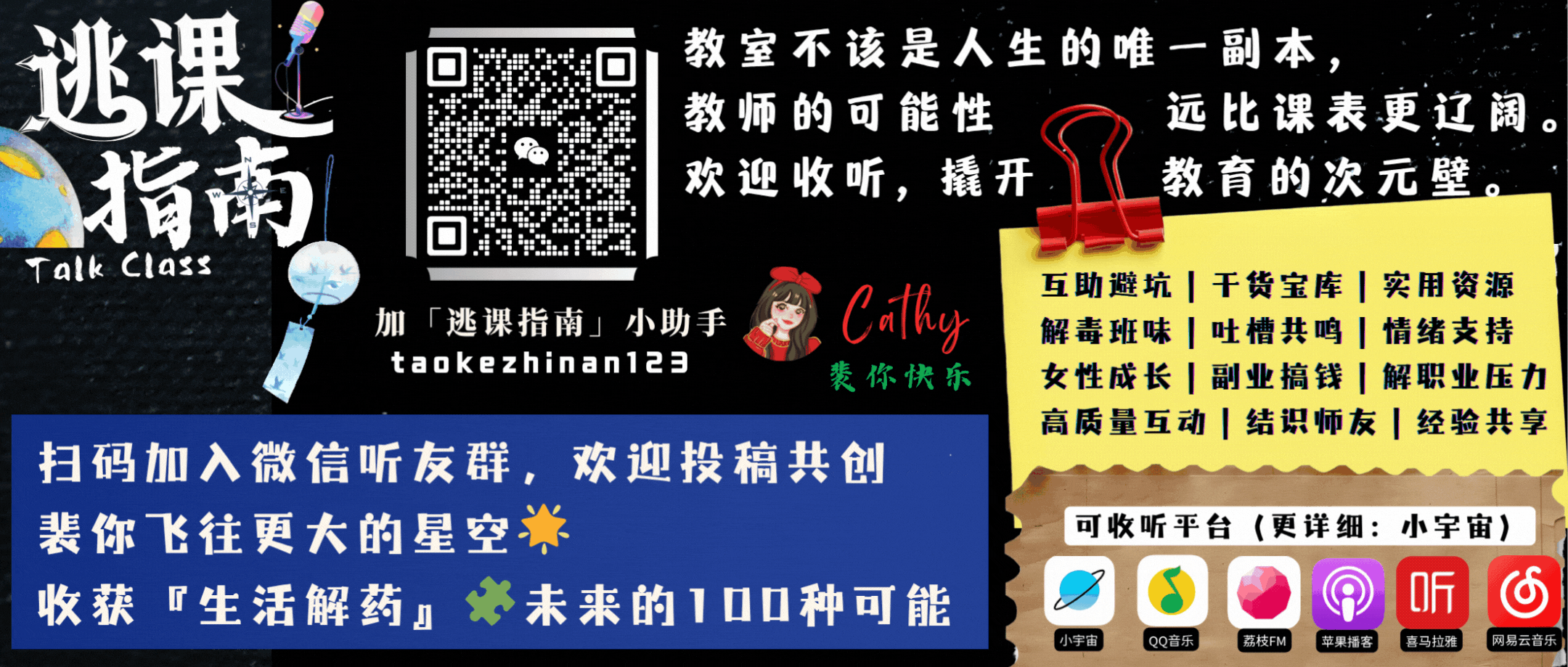 新老师上路急需建议?老教师有槽不吐不快?不是教师,但好奇教师们的秘密心声?希望解答疑惑?欢迎成为我们节目的共创者,投稿让大家听见你的声音! 评论区留下你最想听的内容,下期话题也许就是你的!