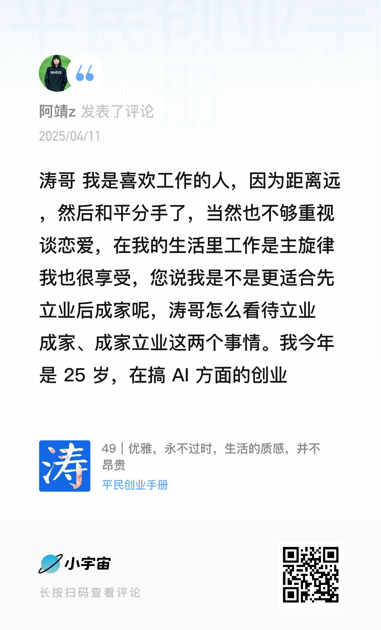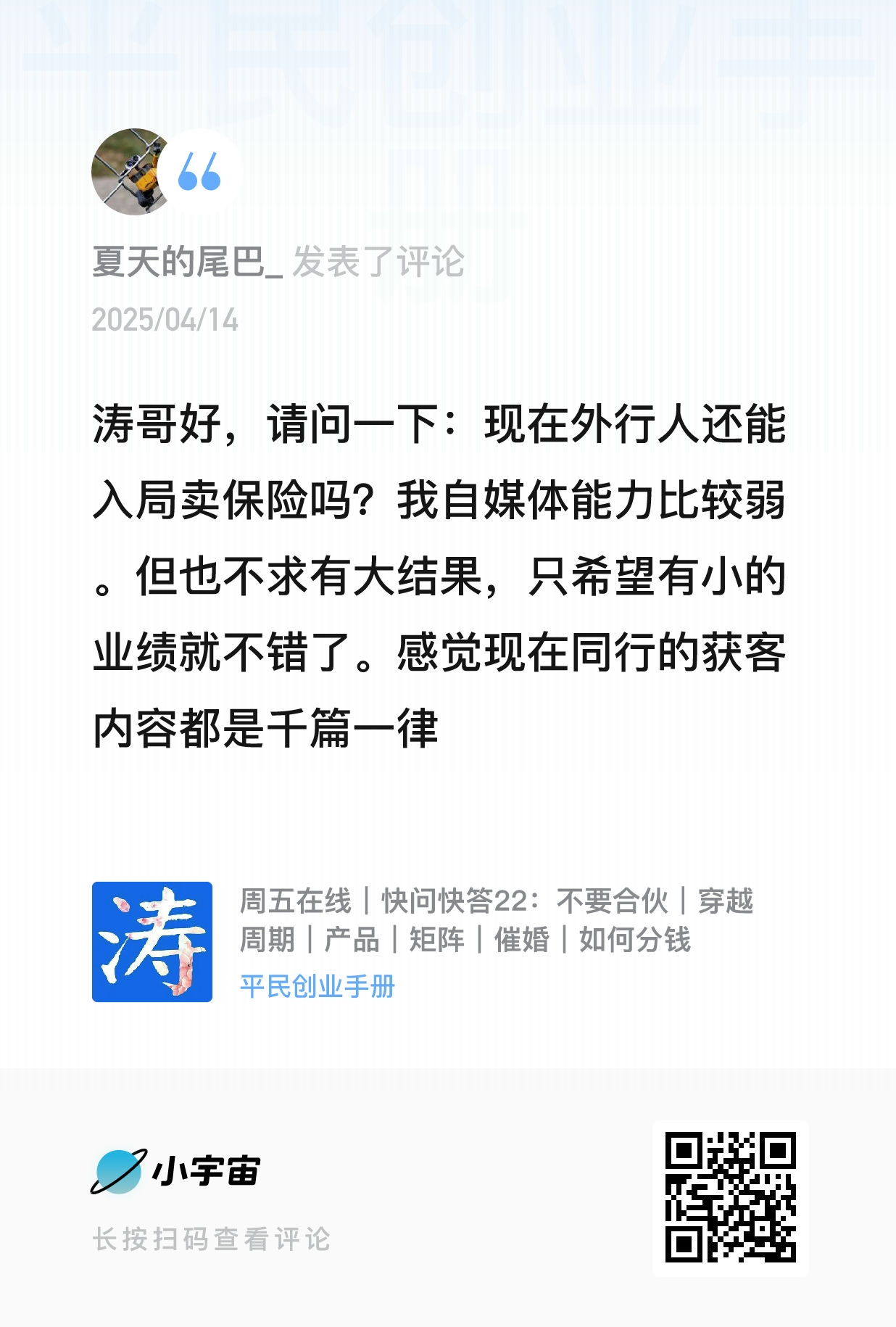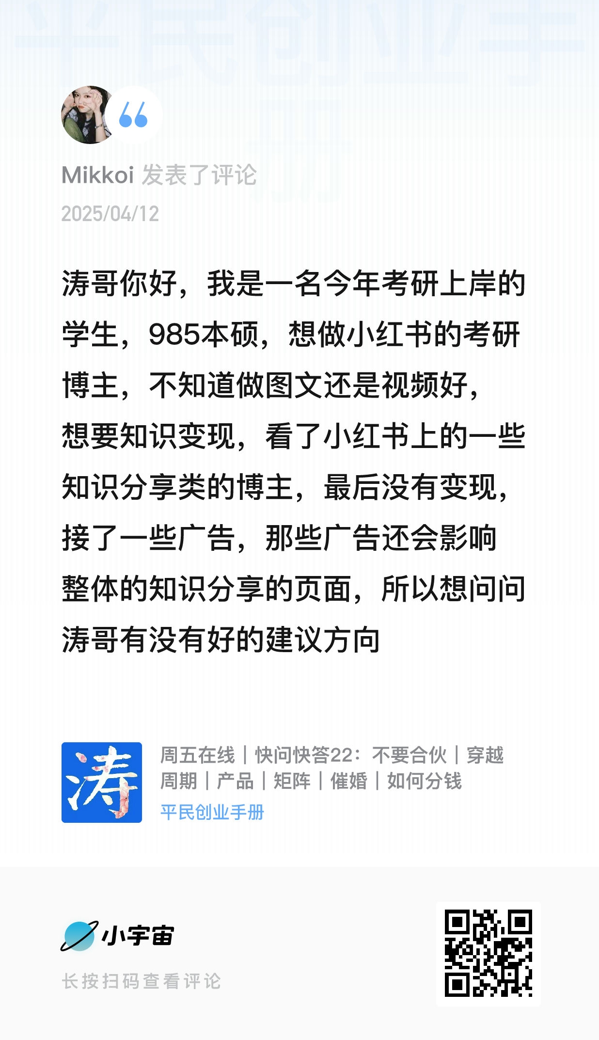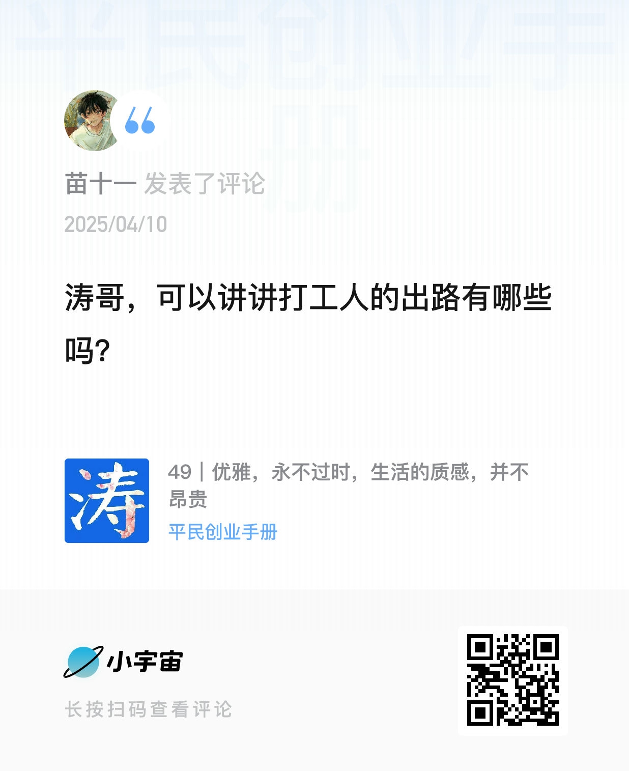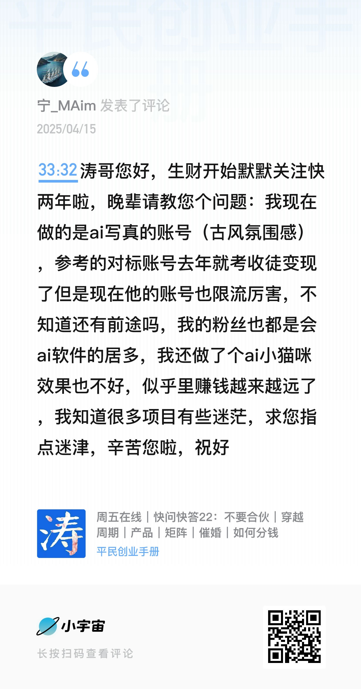 我的微信:xuejieyou6,欢迎撩我,我在「屋里涛说」等你,来星球《平民创业手册》有问必答,