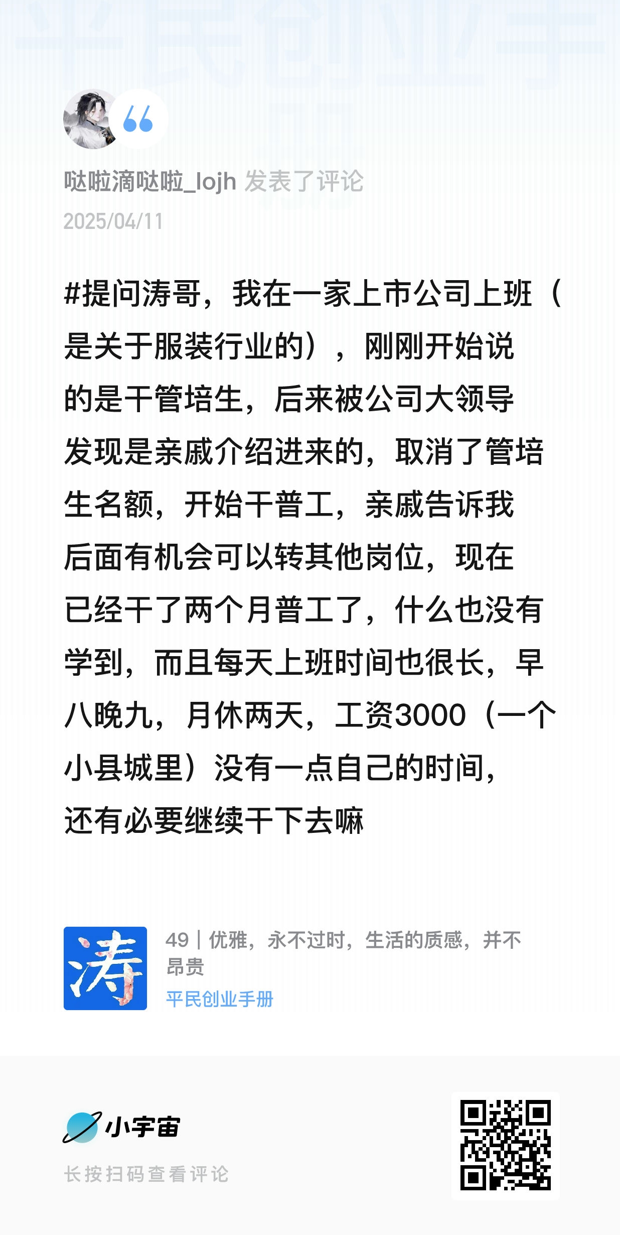 - 10:43 留下三要素:钱多、有晋升空间、时间自由,
