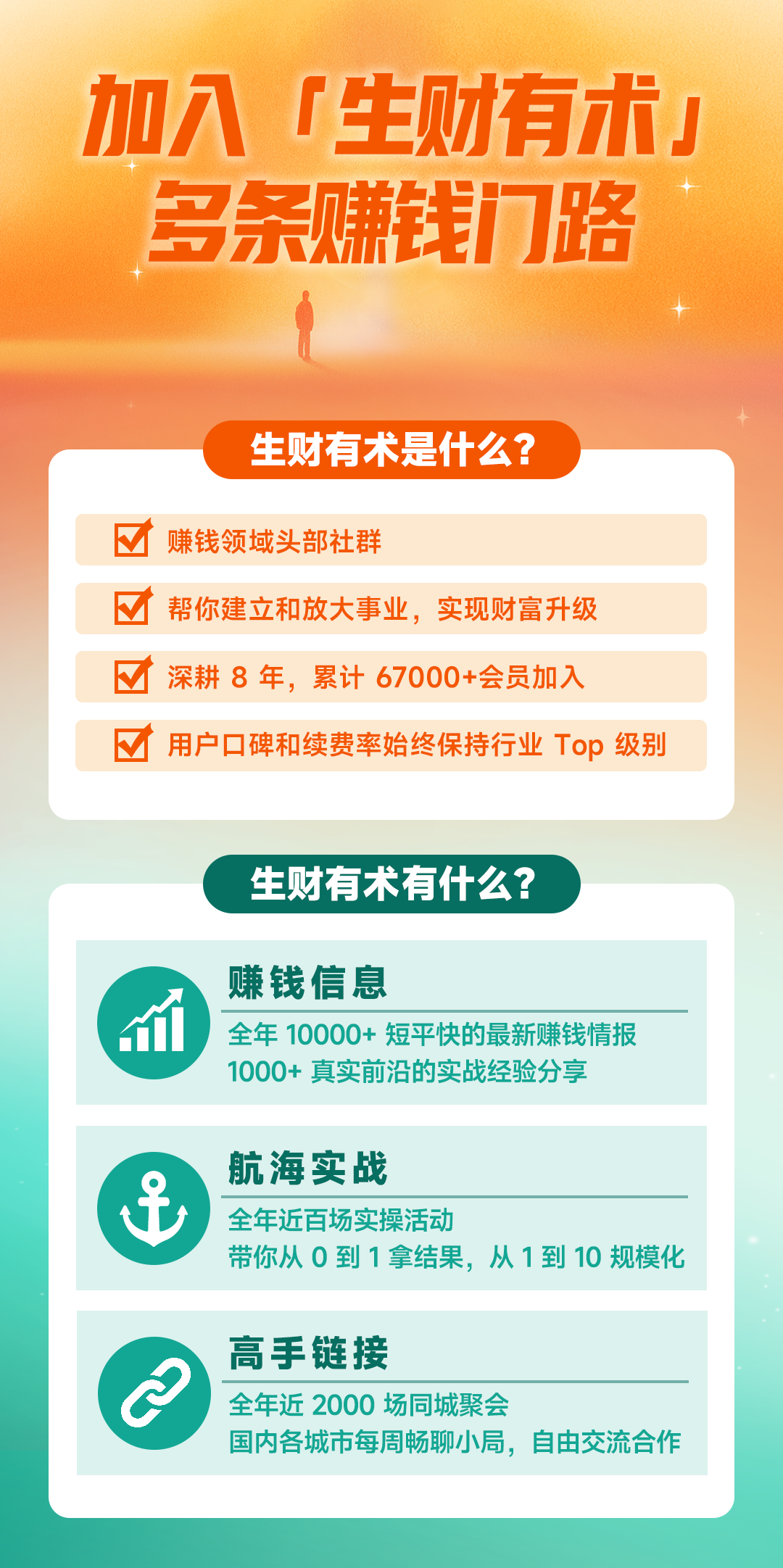 今天的提问,有老师提到打工人如何找出路,如何做自媒体&AI,正值418,给大家推荐一个社群,生财有术,
