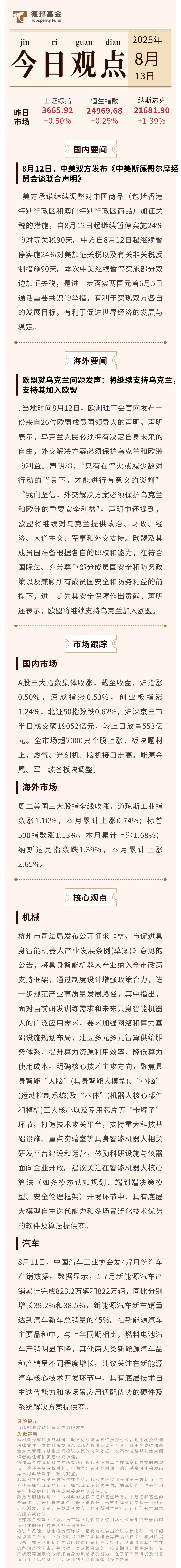 8月13日财经速递,带您最快跟踪板块表现和市场资讯!