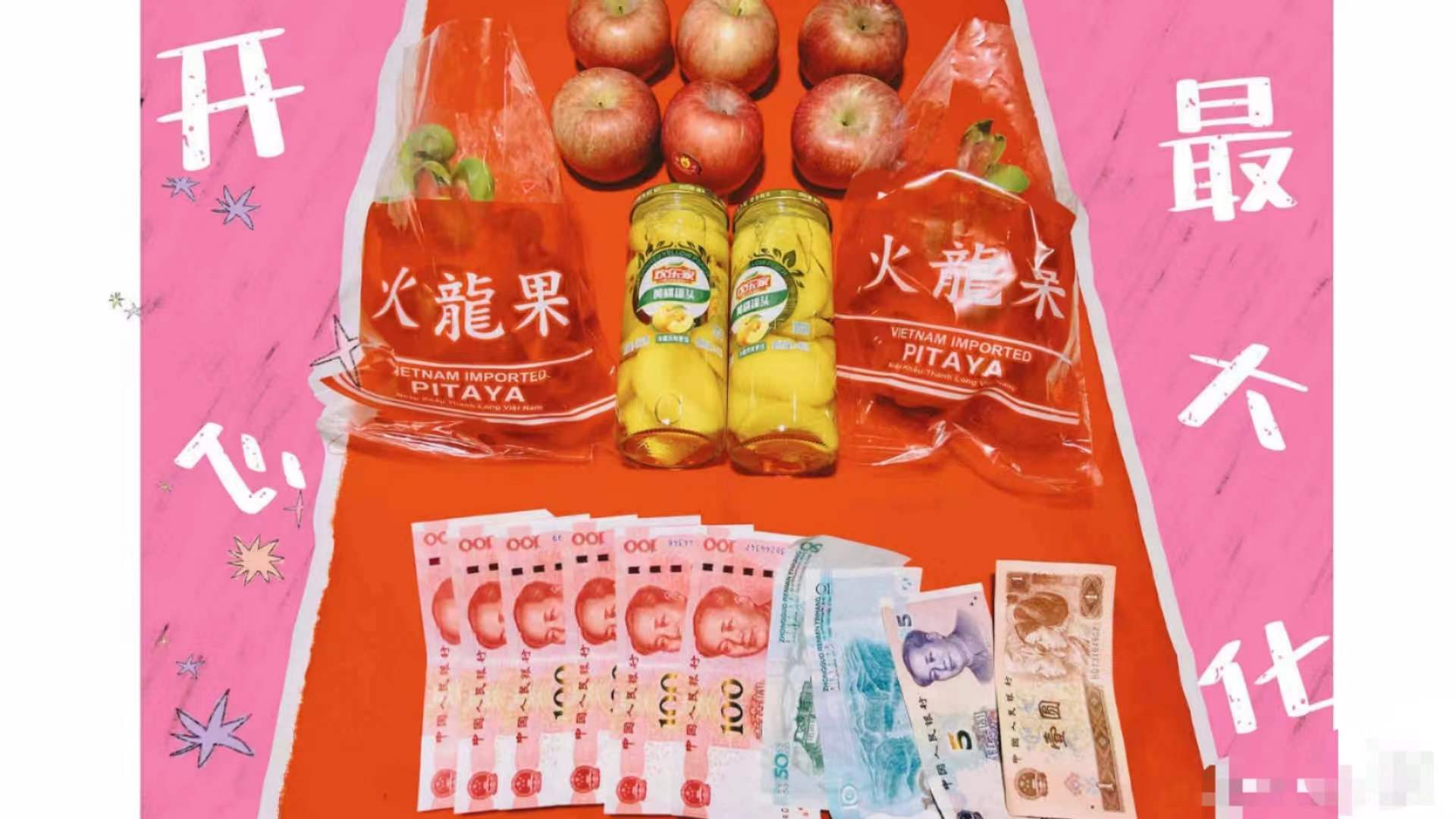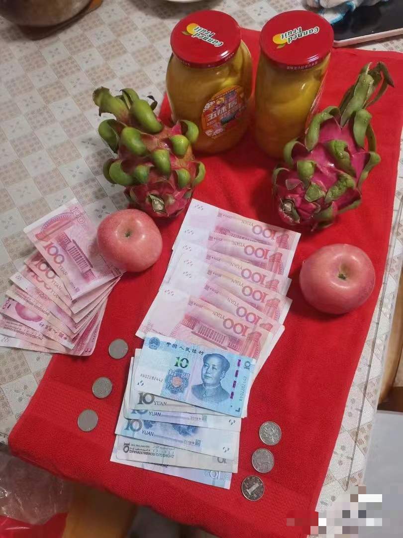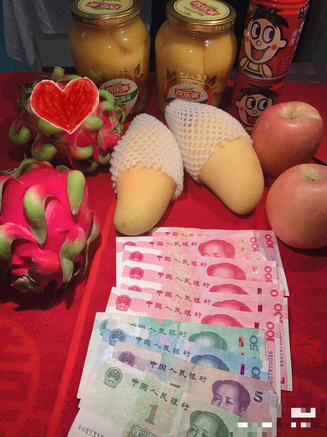 不知从什么时候起,我在安徽省芜湖湾沚区朋友圈就开始频繁看到这个仪式感666元婆婆给儿媳妇的现金红包,底下有红布,上头有黄桃罐头,苹果,火龙果,甚至还有榴莲。