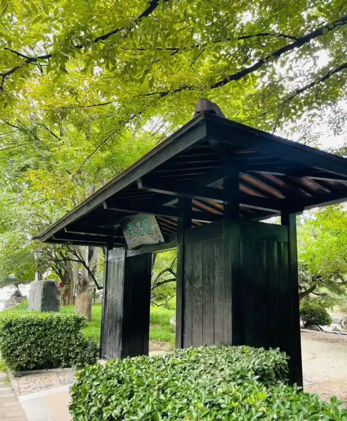 一侧是日式园林“翠石园”,枯山水庭院里,白砂铺就的“溪流”蜿蜒,几块造型古朴的置石象征山峦,苔藓爬满石缝,透着日式园林特有的禅意与清幽。