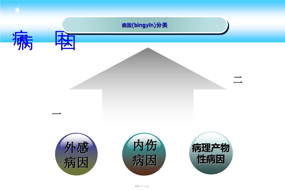 《内经》) 阴阳分类法:病生于阳——风、雨、寒、暑;病生于阴——饮食、居处、喜怒