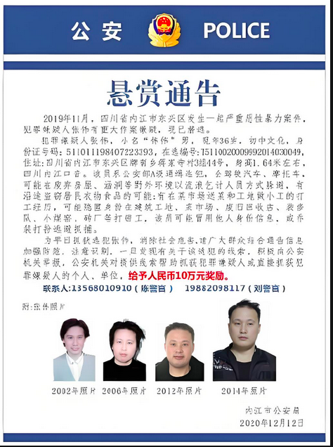 - 四川内江的夜幕曾被三次血色撕裂。1984 年生于稻田土坯房的张伟,从童年田埂上眼神阴鸷的孤僻少年,在赌场与毒品的侵蚀下沦为嗜血恶魔。2014 年春夜,他潜入临江小区,用菜刀剖开王某某夫妻的胸膛,将内脏粗暴装袋;2019 年深秋,他撬开独居妇女谢某的家门,留下满地黑血后,将其尸体抛入冰冷的化粪池。两起案件现场血肉模糊,器官残缺的尸体与带泥的劳保鞋印,成为警方七年追凶的关键线索。
