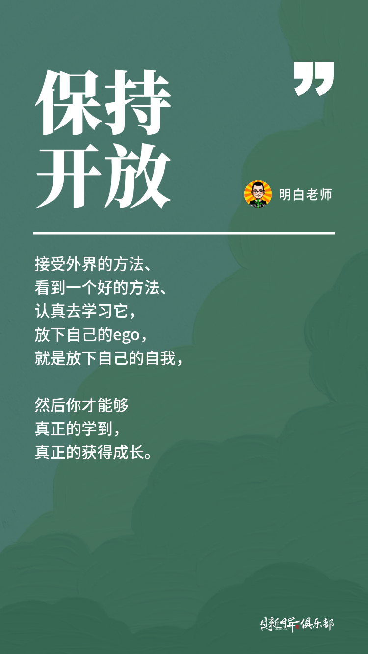 所以接受外界的方法、看到一个好的方法、认真去学习它,放下自己的ego,就是放下自己的自我,然后你才能够真正的学到,真正的获得成长。