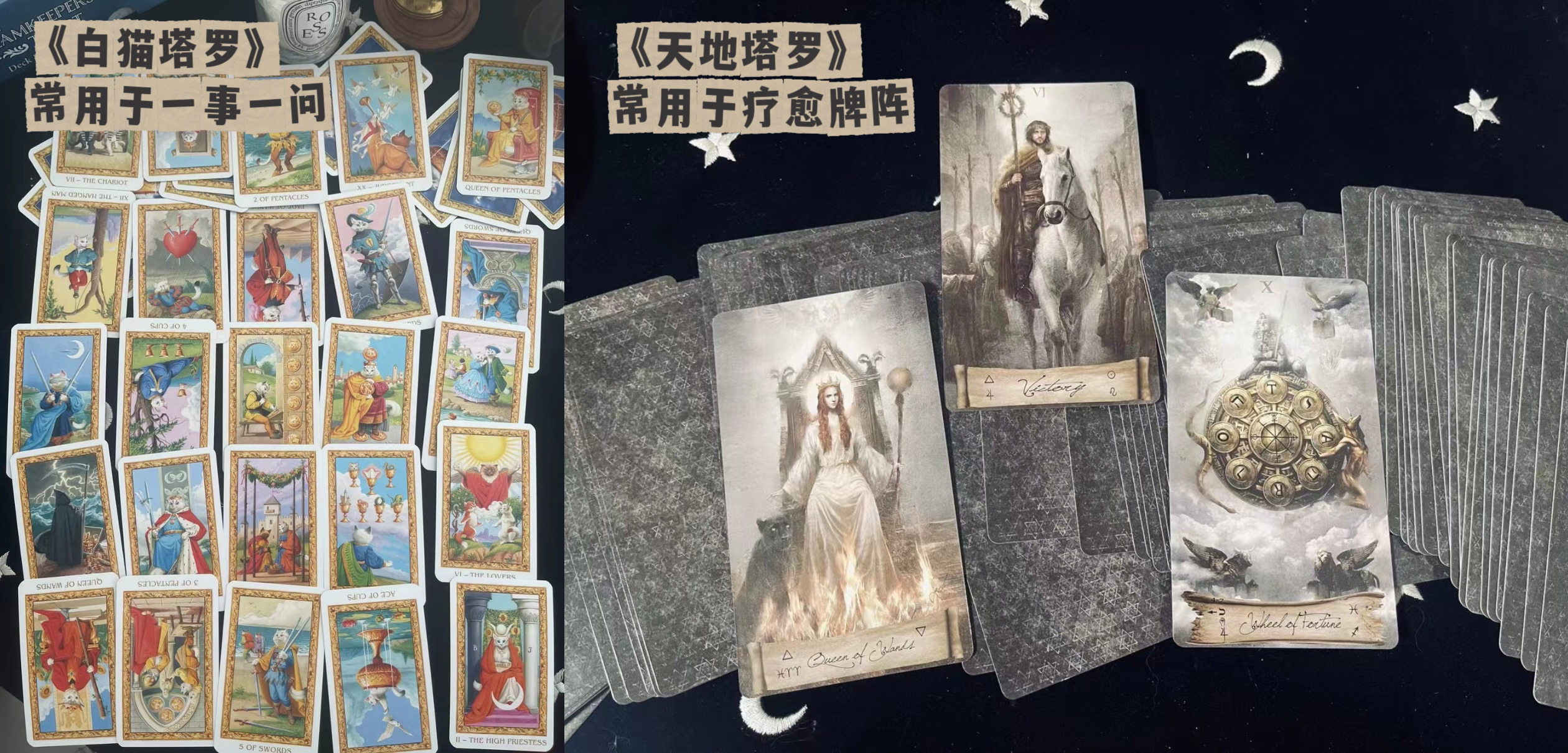 下图为彤羽老师针对不同牌阵使用的塔罗牌