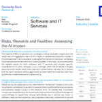 德国德意志银行(Deutsche Bank)3月3日发布《Risks, Rewards and Realities: Assessing the AI impact》行业更新报告,直指软件与IT服务行业正经历AI引发的估值重构,看似恐慌性抛售下,部分企业已显现配置价值。 报告核心结论明确:AI带来的通缩压力与利润率侵蚀确然存在,但市场低估了龙头企业的防御能力,当前板块平均11%的年度跌幅(1月26日后跌幅扩大至14%),已让多数公司估值处于十年低位。 图2(研报第4页)清晰呈现板块分化:Cerillion因大额合同中标股价逆势走强,Eurowag、AutoStore等依赖物理自动化的企业受冲击较小;而Kainos、Reply等IT服务公司及Softcat、Bytes等经销商跌幅居前,GB Group这类处于转型期的企业也未能幸免。这种分化本质是AI冲击的差异化映射——业务越贴近纯软件服务,短期压力越明显。 图4(研报第8页)揭示估值洼地:板块内多数公司EV/EBIT较十年均值大幅折价,GB Group、Dotdigital等折价幅度超60%,部分企业甚至处于历史最低估值区间。这意味着市场对AI的负面预期已过度定价,忽略了企业的自适应能力。 软件与IT服务行业的AI防御战各有侧重:软件企业靠专有数据集、领域 expertise 和客户信任筑墙;IT服务公司则聚焦AI落地配套服务,如数字核心升级、数据治理等。图3(研报第5页)显示,Boku、GB Group等企业虽隐含终端自由现金流负增长,但当前股价已反映极端悲观预期,反而具备修复空间。 图1(研报第2页)的评级调整更具参考性:Bytes因估值深度回调获上调至“买入”,Cerillion则因相对估值偏高降至“持有”,而Softcat、GB Group、Boku、everplay四大核心标的维持“买入”评级,成为波动中的确定性选择。 当前行业正从“AI恐慌”向“理性适配”过渡,企业通过调整定价模型、强化AI原生功能等方式抵御冲击。那些拥有深厚客户粘性、专有数据壁垒和明确转型路径的企业,有望在估值修复中率先受益。