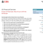 瑞银2026年3月6日发布的《金融业的未来:AI如何改变格局》研报,覆盖资管、银行、保险等六大细分领域,核心结论明确:AI不是颠覆金融业的洪水猛兽,而是推动行业效率重构的核心力量,拥有数据壁垒和技术先发优势的企业将成最大受益者。 资管与经纪商领域,AI让效率实现质变。SCHW通过220多个AI应用场景自动化高量客户请求,减少纸质流程错误;CG利用AI分析海量文件,将原本需数月的投资调研缩短至3天,累计节省21.7万小时工时。银行板块中,合规与运营是AI落地重头戏,JPM的LLM工具覆盖25万名员工,KYC流程成本直降40%;BAC的“Erica”助手覆盖90%员工,IT服务量减半,预计减少2000个岗位冗余。 交易所与信息服务行业,数据成AI时代的核心资产。SPGI用内部AI平台处理超半数数据流程,MSCI借助AI让私人信贷项目周期从数年压缩至6个月,数据点成本下降30%以上。P&C保险领域,AI重构理赔与核保,头部车企通过图像识别让理赔周期大幅缩短,AIG、TRV等凭借海量历史数据在AI训练中占得先机,数据中心建设热潮更带来保费增长新曲线。 研报核心图表揭示行业真相: (研报P26):UBS全球股票评级定义表,清晰划分12个月评级与短期评级标准,Buy评级要求FSR超MRA 6%以上,覆盖52%的跟踪企业,IB服务占比24%,直观展现投行评级逻辑。 (研报P5):另类资管软件敞口占比表,TPG以11%的总敞口(PE领域达18%)居首,OWL、KKR紧随其后,反映不同机构对AI相关投资的布局差异。 (研报P14):FDS AI产品业绩贡献表,2025财年新独立AI产品推动ASV增长40个基点,Q1投行AI产品使用率环比翻倍,35%续约客户认可其AI价值,印证AI商业化潜力。 (研报P17):P&C保险数据中心保费增长预测表,全球数据中心建设年增100亿美元保费,美国、欧洲、中东为核心市场,AIG、BRK等成直接受益者。 AI带来的不仅是机遇,也有明确风险:数据泄露、模型幻觉可能引发合规危机, junior岗位自动化重构人才体系,中小机构因技术投入不足面临淘汰。但长期来看,行业 consolidation 不可避免,拥有 regulatory moat、数据沉淀和技术预算的龙头企业(如SCHW、COF、SPGI、MRSH)将持续领跑。 想获取研报完整数据与细分赛道深度分析,可加入外资研报知识库,每日同步高盛、瑞银等顶级投行最新报告,搭配图文+音频解读,帮你快速抓准行业趋势。