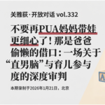 *本期录制于2026年1月21日,北京,本期首播于《三侠大爸 Pod Save Dad》,这里是备份播出 开放对话的人: 大风,三侠大爸 Pod Save Dad Alex,知名博主 @Alex绝对是个妞儿 本期主要内容: 1. 节目背景与核心嘉宾档案 在新生儿出生人数跌破800万大关、性别意识深度觉醒的当下,“育儿”已从家庭内部的琐事跃升为具有高度张力的社会议题。当下的父职不再是缺位后的偶然回归,而是一场在数字景观、职业瓶颈与自我实现之间的多重博弈。本期《三侠大爸》播客,通过一场深度“坦白局”,撕开了社交媒体上被精致滤镜包裹的“完美育儿”假象,直击父职觉醒中的阵痛与结构性红利。 视角互补性评估: 三位嘉宾构建了一个极具颗粒度的观察闭环:大风代表了试图通过“肉身实验”弥合父职缺失的进阶男性;Alex作为觉醒女性,精准捕捉并批判了父职实践中的“标准降级”;关雅荻则以资深内容人与电影人的理性,展示了如何通过物理支持系统的搭建来重构家庭协作。这种组合不仅是视角的碰撞,更是对数字时代“理想家园”的一次深度解构。 当个体身份与公共叙事交织,我们首先要面对的是数字时代最残酷的悖论:当孩子成为博主生活的一部分,隐私与商业的边界何在? 2. 隐私权的十字路口:当孩子成为社交媒体的“商品” 近日,布鲁克林·贝克汉姆(Brooklyn Beckham)正式将妻子姓氏 Peltz 加入自己的名字,并公开控诉长期以来被家庭品牌“商品化”的压抑感,这一事件在博主家庭中引发了剧烈共振。对于 Alex 和关雅荻而言,孩子既是生命的延续,也难以避免地成为了内容生态的一环。这种“家族品牌维护”与“个体自主意识”之间的冲突,是职业博主无法回避的伦理考题。 分享界限的认知博弈 在“何时停止发布孩子影像”的标准上,两位嘉宾展现了极具启发性的边界差异: 关雅荻:从“视觉动物”到“声音主体”的过渡界限: 约2-2.5岁(语言交流能力成熟时)。 策略: 他认为婴儿期更接近“小动物”状态,父母拥有代理权;但当孩子拥有自主意识后,他主张从视频转向声音(播客)。他认为声音录制是对孩子作为“有观点的人”的尊重,而非单纯的视觉景观展示。 Alex:基于社交渗透与“商品化”的自省界限: 当孩子的社交圈与父母重叠,或孩子对镜头产生明显的“侵入感”时。 心态: 坦诚在亲子商单中存在“商品化”孩子的行为,并为此感到道德焦灼。她高度警惕孩子在未来通过互联网追溯到自己隐私被“售卖”的记录。 深度分析: 为了对冲这种“隐私剥夺”的补偿心理,关雅荻提出了极具实操性的“内容策略”:为孩子设立独立账户并进行财务分红(如将商单收益的30%留给孩子)。这本质上是职业父母在意识到“剥削”不可避免后,试图通过建立“契约关系”来维护亲子关系的底层正义。 对隐私的克制是理性的进步,但要真正理解父职的荒诞与真实,必须直面那些最尴尬的“育儿黑历史”。 3. 真实与尴尬:育儿“黑历史”的坦白局 “黑历史”并非仅仅是社交谈资,它是新手父母身份转型的复盘工具。通过自曝,三位嘉宾展示了男性在育儿初期那种深刻的“不在场感”与角色错位。 核心案例复盘:从“哥们模式”到“权力博弈” 大风:父职“非存在”的典型体现“递酒式”递奶: 曾像在酒吧递酒给哥们一样,将整盒未拆封的奶盒直接塞给幼儿。这不只是粗心,更揭示了其大脑仍停留在“兄弟社交模式”,而非“照料者模式”。 角色滞后: 老二出生当晚,他竟认真考虑去参加约好的球局。这种潜意识里的逃避,反映了男性在面临身份巨变时,对“旧我”自由的极度贪恋。 危险驾驶: 因习惯性急躁导致高速追尾,置妻儿于险境,这是对“保护者”身份的彻底失职。 关雅荻:极度理性的“行动阳谋”48小时“阳谋”: 在发现意外怀孕到决定留下的24-48小时内,他迅速购买了大量叶酸和权威育儿书。这种行动上的先行,既是诚意的表达,也被妻子视为一种温和而坚定的无声Push。 生活节奏的强权: 在妻子月子期间,他曾强拽对方下楼散步,本质上是试图通过外力强行恢复产前的生活秩序,却忽视了女性产后的生理与心理脆弱期。 Alex:创伤后的性别警示高餐椅安全隐患: Alex 曾明确预警风险,大风却因“直男自信”未给孩子系高餐椅安全带,导致孩子险些坠落。这被 Alex 归结为男性对风险的结构性蔑视,是父职实践中最大的“信任缺口”。 本质分析: 这些黑历史共同指向了一个事实:男性的父职觉醒往往伴随着“迟钝”与“傲慢”。他们倾向于用“没事、不至于”来合理化自己的疏忽,而这种粗线条本质上是对育儿颗粒度和潜在风险的认知盲区。 每一个荒唐瞬间的背后,都揭示了传统性别角色在育儿分工中根深蒂固的结构性红利。 4. 性别角色的结构性反思:父职觉醒的代价与红利 对话揭示了一个令人警醒的现象:社会对“好爸爸”的评价体系处于极端低标态。父亲带娃出现在公共场域,往往能获得某种“结构性红利”。 核心议题剖析 “标准降级”:绝望后的负面权力让渡 Alex 指出,女性在经历无数次失望后,会主动降低对配偶的要求(如“只要孩子活着就行”)。这种降级表面上解放了男性,实则是女性对父职协作彻底绝望后的无奈选择,是一种极具破坏性的家庭权力异化。 “及格即高分”:公共场域的父职红利 大风提到,他在独自带孩子打疫苗时,医护人员表现出极大的赞赏,甚至开玩笑要发棒棒糖