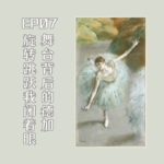 祝大家端午安康! 本期继续讲艺术家的一生故事,回归到印象派系列。 今天的主人公叫是埃德加·德加(Hilaire-Germain-Edgar De Gas),法国著名的印象派画家与雕塑家。“芭蕾舞舞女”与“赛马场”是他人生创作的两大主题,但谁能知道原本他的理想是成为一名历史画家呢? 那么究竟是什么让他虽然拒绝被打上印象派标签,但还是积极参加印象派联展,创作了大量带有现实主义风格的印象派作品呢?不如来听我们仔细聊聊。 时间轴: 02:15 对于德加的初印象 04:46 简单介绍德加的艺术成就 06:13 古典主义与学院派 以及 什么是现实主义 11:23 德加的童年以及家庭环境 23:11 德加的转变(青年至中年) 28:53 德加与马奈的友情 32:08 德加开始描绘芭蕾舞者 37:56 粉彩技法 39:01 从玛丽·卡萨特来聊聊艺术中的男性凝视 49:07 单色画——版画技法 53:42 德加的老年生活 57:24 雕塑作品:《十四岁的小舞女》 1:03:27 德加的爱好 片尾曲:《舞娘》——蔡依林 《舞蹈课》(The Dance Class) 1874年 《粉红与绿色的舞者》(Dancers in Pink and Green)1880年 梳头发的女孩Girl Arranging Her Hair, 1886 Mary Cassatt 梳头发的女人 Degas 《舞台上的舞者》(Dancers on Stage)1880 雕塑:十四岁的小舞女 little dancer aged fourteen 1878-1881 最后,欢迎关注我们的公众号,搜索:《画饼不吃饼》或者扫描下方二维码,欢迎来玩儿~ 在哪里可以找到主播: 李小北 小红书搜索:冬瓜不叫瓜叫果儿 小红书号:944123997 周周 小红书搜索:Mongol 小红书号:262432346