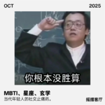 EP002|MBTI、星座、玄学,当代年轻人的社交止痛药 你见过拜佛得工作、还愿却遭裁员的反转吗?听过父亲避灾提醒下仍遇意外的巧合吗?今天带你解锁年轻人的 “玄学日常”!从旭哥呼和浩特大召寺求业、咸鱼雍和宫许愿的真实经历,到 MBTI 成社交货币、助职业规划的实用场景,我们深挖年轻人信玄学的真相 —— 是压力下的精神寄托,还是对未知的恐惧? 玄学真能逆天改命?MBTI 会让人自我设限吗?我们还揭秘 “天机不可泄露”“财神不保穷人” 的行业规则,探讨玄学与 MBTI 该是指引而非宣判:i 人也能做好谈判,“小蝴蝶” 照样当管理。这场讨论,帮你看清玄学本质,找准自我认知的方向! · 玄学经历分享 o 旭哥拜佛经历 § 初次拜佛得工作:旭哥一年多前失业,散心去呼和浩特大召寺,拜普贤菩萨求工作,回酒店便接到入职电话,后在该单位工作半年。 § 还愿后遭裁员:为表诚意,旭哥专程前往还愿,捐 500 元现金,结果不到一周公司因业务减少裁员,且无补偿。不过他认为这可能是创业契机。 o 咸鱼拜佛习惯:咸鱼从小受爷爷奶奶影响信玄学,常去雍和宫拜佛,许愿时会详细默念自身情况,并考虑得失关系。 o 咸鱼父亲的暗示经历:咸鱼父亲曾被人提醒别出门,他听话未出门,仅上趟公共厕所回来就被人揍。 · 玄学现象探讨 o 年轻人热衷玄学原因 § 精神寄托需求:晓蒙认为社会发展快,年轻人压力大,将求神拜佛、占卜算命等视为精神寄托,结果好坏可影响其生活和工作动力。 § 对未知的恐惧:咸鱼指出现在人衣食住行满足但对生老病死更难接受,自身无法掌控,便将希望寄托于玄学。 o 玄学的作用限度 § 无法逆天改命:旭哥觉得命数既定,求神拜佛改命需付出代价;晓蒙认为人生有剧本,算命准是看到剧本,求神拜佛可提升财富阈值但不能翻倍。 § 可避小灾:大家认为有大修为的人或许能帮人躲过小病小灾,如戴玉镯子碎了可能挡灾。 · MBTI 人格讨论 o MBTI 成为社交货币 § 破冰话题:MBTI 成为认识新朋友的入门破冰话题,通过了解对方人格类型,可初步判断是否同频。 § 自我认知参考:旭哥面试时被问 MBTI 类型;大家认为它能帮助自我认知,如tuangtuang通过测试发现自己计划性强。 o MBTI 的影响 § 人格并非固定:不同时间做 MBTI 测试结果可能流动,随着成长想法改变会影响性格。 § 提升共情能力:了解不同人格获取能量的途径,能让人更理解他人,提升共情能力。 § 职业规划参考:可作为职业规划参考,帮助明确适合岗位,如咸鱼因了解自身性格,选择适合单干或管理团队的工作。 · 玄学与自我认知 o 玄学作为暗示和指引:玄学和 MBTI 更多是给人暗示和指引,不能给人宣判。应接受其引导,但不被主导,让自己更了解自己。 o 正确看待标签:不能因标签自我设限,如tuangtuang虽为 i 人,但在谈判工作中表现良好;咸鱼虽被认为“小蝴蝶”不服管,但能发挥自身优势。 · 玄学行业规则 o 天机不可泄露:旭哥提到其粉丝中的道士大哥表示,行业规定不能泄露天机,否则担因果,有损修为,但可话里话外点拨。 o 财神不保穷人:内行有“财神不保穷人”说法,穷人拜财神需花大量钱财修庙、供神,才可能得到保佑。 时间戳如下~~ 00:12 旭哥拜佛还愿经历及工作被裁后的感悟 09:32 年轻人信玄学原因及对传统文化的态度探讨 15:31 MBTI成社交破冰话题及了解他人标签 17:17 星座属性分析及不同时间出生性格差异探讨 20:58 MBTI等标签在社交中作挡箭牌的讨论 23:28 讨论年轻人对算命的依赖及个人态度差异 25:01 抖音黄历与拜神许愿及代价的讨论 28:13 人生剧本、算命及求神拜佛的作用探讨 33:26 MBTI测试的作用、影响及个人性格适配探讨 「️本期主播」 勤劳致富的旭哥 国色天香的tuangtuang 祝您发财的晓蒙 鲜香酥脆的咸鱼 「什么是摇摆客厅」 别慌!这不是啥高大上播客,就几个老同学凑一块儿扯闲篇儿。我们互怼起来没底线,吐槽起来不手软,但走心的时候谁也不含糊。没有假大空的道理,全是实打实的生活破事,唠嗑的空闲没准儿还能灌点儿正能量。不管你是通勤堵在路上,还是瘫在沙发刷手机,都来 “摇摆客厅” 坐会儿!听我们瞎侃,跟我们一块儿乐,顺便在鸡毛蒜皮里找点儿生活的小底气~ +微信ybkt7777联系小助理,入座客厅一起摇摆,共享有意思的小故事吧 BGM: Coffee Pot,Pt.1-Bo Junior Funk Ain’t Ova-Brooklyn Funk Essentials