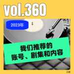 vol.360 2023年我们推荐的账号、剧集和内容 Debbie推荐 油管音乐频道 - Bobby Nsenga - Blook Club Radio - Cercle - Apartment life 摸鱼账号: - 比格犬受害联盟 - 风林火山哥 美剧:(不算推荐只是评论) - 大嘴巴 - 拾荒者统治 - 瑞克和莫蒂最新一季 - 曼达洛人 碧池推荐: - 播客《电影巨辩》; - 电影《博很恐惧》; - 剧集《超异能族》《熊家餐厅》; - 帐号“BB大王” 小宝推荐的🆙: - 鞑厨高寒 - 食事史馆 - 音乐专辑🎵: - NF- HOPE - Newjeans 动漫: - 葬送的芙丽莲 - 间谍过家家 - 进击的巨人 - 来自深渊 - 万神殿 第二季 美剧: - 同路人 - V世代(超能力与青少年问题结合在一起) - 最后生还者 国产电影: - 不虚此行 剪辑:lyyAwDa 图片:嗯!张月